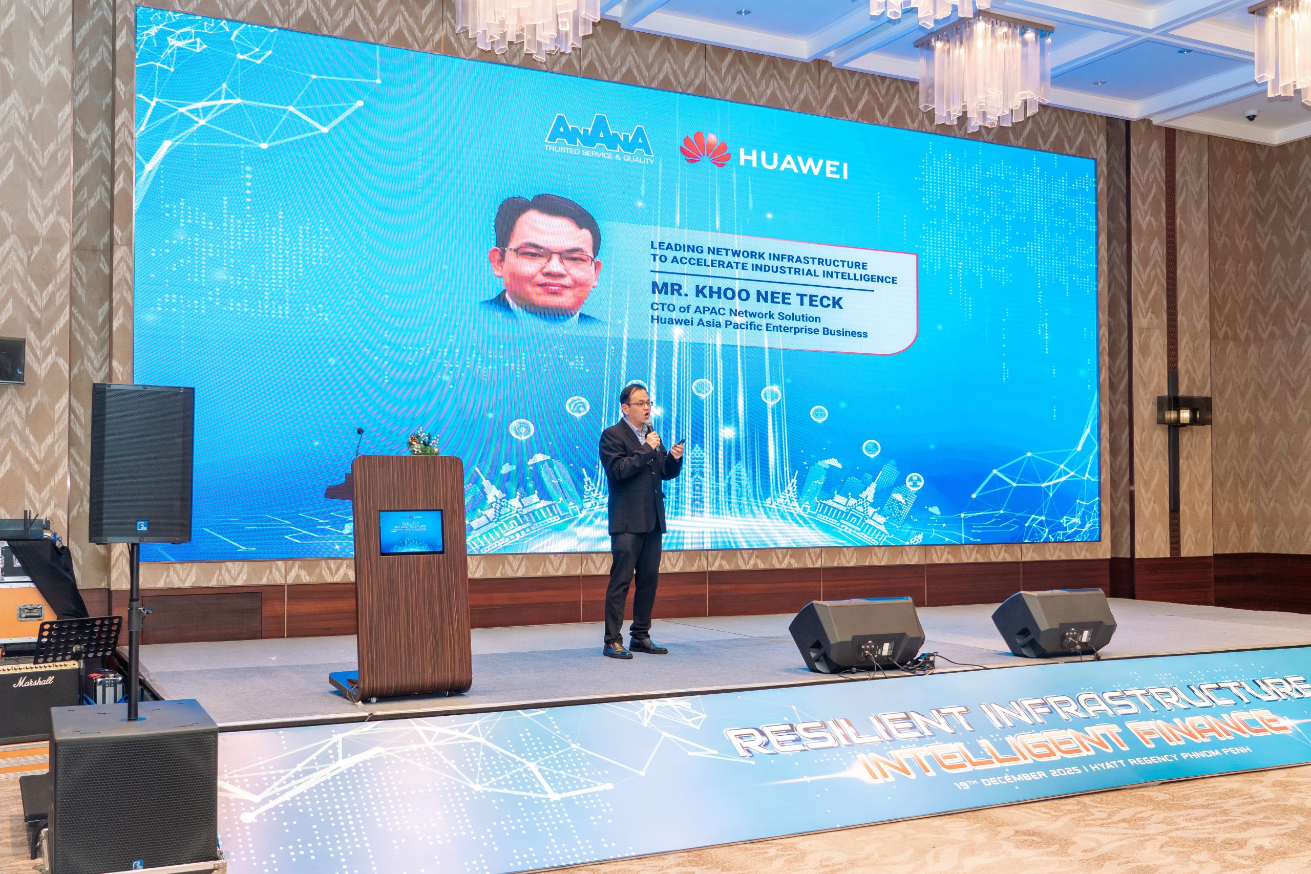 ក្រុមហ៊ុន អាណាណា កុំព្យូទ័រ សហការជាមួយក្រុមហ៊ុន Huawei Cambodia បានរៀបចំសិក្ខាសាលាថ្នាក់ខ្ពស់ក្រោមប្រធានបទ «RESILIENT INFRASTRUCTURE, INTELLIGENT FINANCE 2025» ដោយជោគជ័យ នៅថ្ងៃទី ១៩ ខែធ្នូ ឆ្នាំ ២០២៥AnAnA Computer, in collaboration with Huawei Cambodia, successfully organized a high-level seminar entitled “Resilient Infrastructure, Intelligent Finance 2025” on December 19, 2025, at Hyatt Regency Phnom Penh.